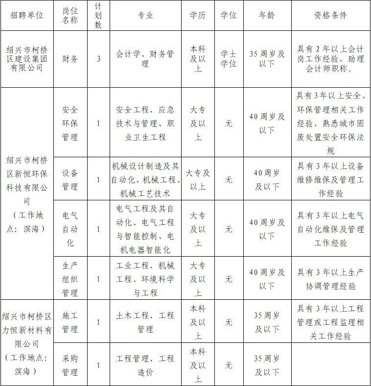 紹興市柯橋區(qū)建設(shè)集團(tuán)有限公司派遣制人員招聘公告